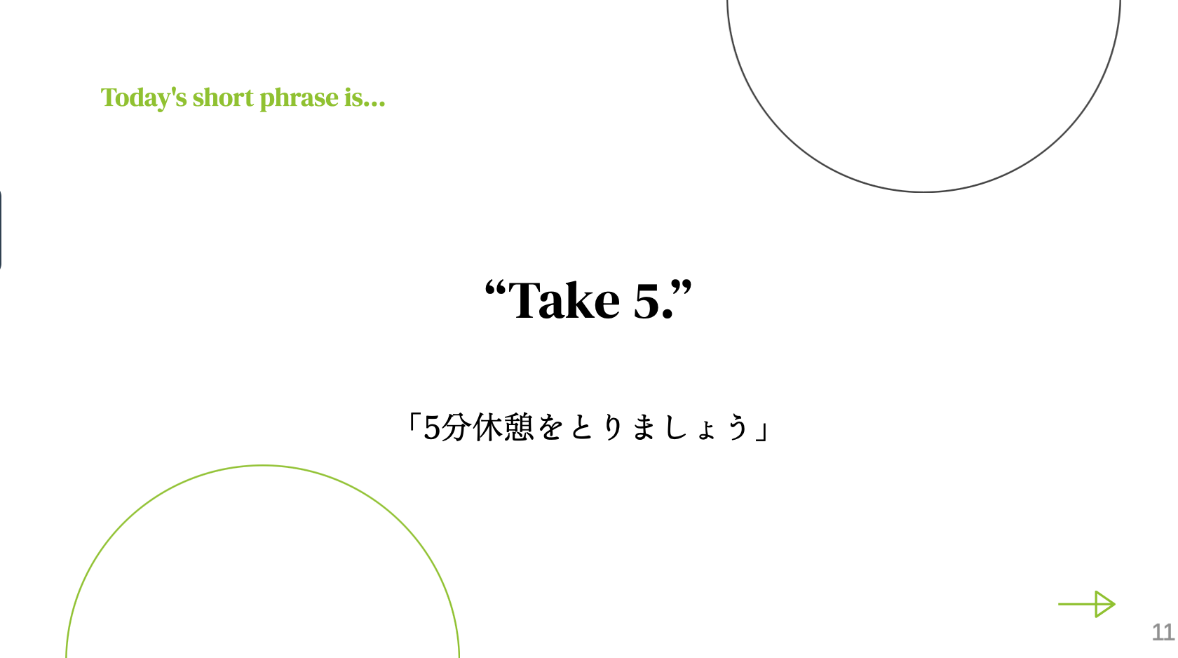 - レッスンで頻繁に登場する表現・説明のフレーズを学びます。これまでの講座内容と組み合わせながら、「英語で言われていることがわかる」状態を目指します。